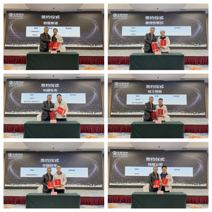 華騏環(huán)保旗下安徽英特倫智控股份有限公司、安徽華騏蔚藍智能裝備有限公司、安徽華騏管家環(huán)保咨詢服務(wù)有限公司、安徽華騏生態(tài)環(huán)境材料有限公司以及2024年新成立的安徽雙工智聯(lián)環(huán)??萍脊煞萦邢薰尽ⅠR鞍山市緯度建筑工程有限公司六家主要專業(yè)子公司齊聚一堂,匯報了2024年的經(jīng)營成果、核心業(yè)務(wù)發(fā)展,制定了主要專業(yè)子公司三年發(fā)展規(guī)劃,并舉行了2025年承諾指標簽約儀式。