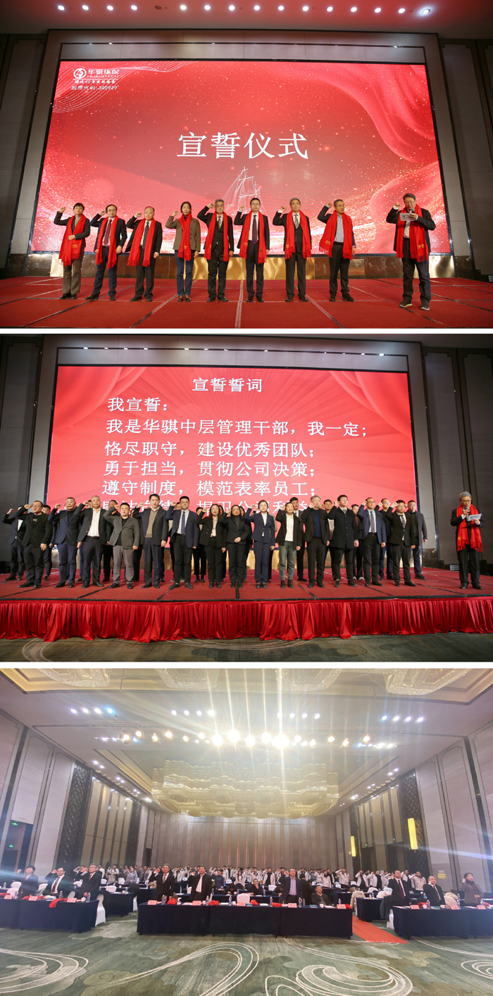 總裁鄭杰對(duì)2025年經(jīng)營(yíng)工作的開展提出了部署,他通過基建潮退去、項(xiàng)目運(yùn)營(yíng)負(fù)重前行、技術(shù)應(yīng)用的瓶頸、行業(yè)洗牌加劇等方面,分析了當(dāng)下的行業(yè)現(xiàn)狀。鄭杰指出,危機(jī)不是來自動(dòng)蕩本身,而是來自延續(xù)以往的邏輯,環(huán)保企業(yè)的業(yè)務(wù)模式、技術(shù)研發(fā)和市場(chǎng)擴(kuò)張正遭遇空前的內(nèi)外壓力,2025 年的環(huán)保行業(yè),擺在企業(yè)面前的將是變革進(jìn)一步加劇的新局面。他強(qiáng)調(diào),新形勢(shì)下公司的發(fā)展,首先要夯實(shí)技術(shù)產(chǎn)品化,加大原創(chuàng)、高端產(chǎn)品的研發(fā),2024年技術(shù)產(chǎn)品化已初見成效,2025年要進(jìn)一步通過智慧化高端產(chǎn)品打造華騏持續(xù)的盈利能力;其次,要積極響應(yīng)國(guó)家“走出去”戰(zhàn)略,不出海、就出局;再次,布局未來風(fēng)口,華騏環(huán)保將在氫能產(chǎn)業(yè)的上游(制氫)、中游(儲(chǔ)運(yùn)氫)和下游(氫能綜合應(yīng)用)環(huán)節(jié)進(jìn)行全面布局,形成一條完整的產(chǎn)業(yè)鏈;最后,產(chǎn)品經(jīng)理、市場(chǎng)各部門、各子公司應(yīng)將創(chuàng)新思維置于戰(zhàn)略轉(zhuǎn)折工作的首要位置,找準(zhǔn)產(chǎn)業(yè)與服務(wù)轉(zhuǎn)型的著力點(diǎn),提高執(zhí)行力,不斷創(chuàng)新業(yè)務(wù)模式與技術(shù)服務(wù)能力。演講結(jié)束后,會(huì)議進(jìn)行了高管、中層、員工的宣誓儀式,以及2024年度先進(jìn)個(gè)人及集體表彰。