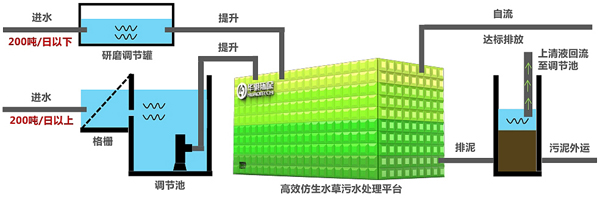 高效仿生水草污水處理平臺工藝流程圖