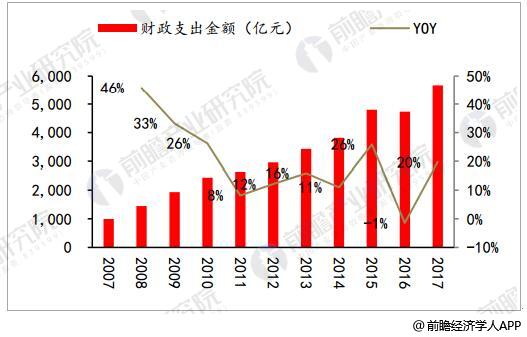 2007-2017年全國環(huán)保行業(yè)財(cái)政支出金額及增長情況