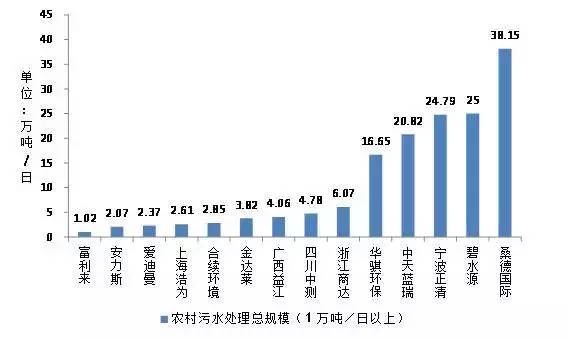 其中,農(nóng)村污水處理總規(guī)模大于1萬噸/日以上企業(yè)排名如下圖所示: