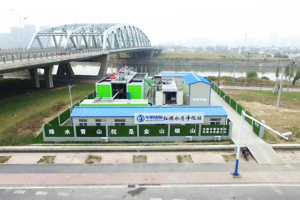 合肥市南淝河流域應(yīng)急污水處理服務(wù)紅旗泵站位于上海路與濱河路交口西南角,工程占地約1230㎡,設(shè)計(jì)處理能力5000m3/d,采用我司研發(fā)的Rapid-Move黑臭水體旁路處理系統(tǒng)——“魔方磁(磁混凝系統(tǒng))+魔方尊(BAF系統(tǒng))”組合工藝產(chǎn)品。進(jìn)水從柳蔭塘路下方自流箱涵末端取水,當(dāng)水量不足時(shí),從紅旗排澇泵站進(jìn)水前池泵提取水或?yàn)I河路污水管網(wǎng)泵提取水,出水通過管道接入紅旗排澇泵站出水箱涵,出水達(dá)到地表準(zhǔn)IV類水標(biāo)準(zhǔn)。