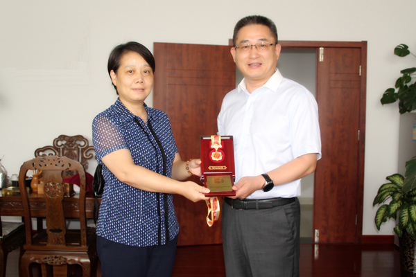 今日上午,在中華人民共和國成立70周年之際,馬鞍山市科學(xué)技術(shù)局局長王焰一行代表市政府來到安徽華騏環(huán)??萍脊煞萦邢薰荆瑸槿A騏環(huán)保副董事長兼總工程師鄭俊送來由中共中央、國務(wù)院、中央軍委頒發(fā)的“慶祝中華人民共和國成立70周年紀(jì)念章”。