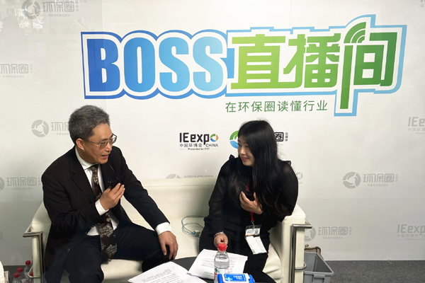 總裁鄭杰(左)在“中國環(huán)博會Boss直播間”接受采訪