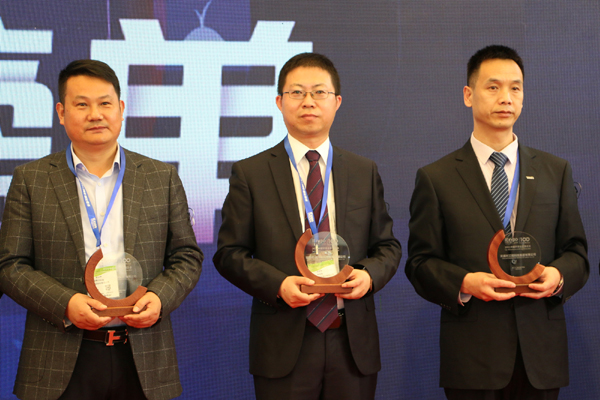 副總裁連宏偉(中)代表公司領(lǐng)取“環(huán)博會百強企業(yè)”獎杯