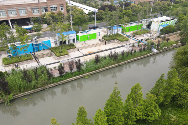 泗陽縣經(jīng)開區(qū)葛東河文成路水質(zhì)凈化站,位于文成東路與葛東河路交口東南角,秀達(dá)玩具廠以東,實(shí)際占地約704.2㎡,設(shè)計(jì)處理能力2500m3/d,采用磁混凝系統(tǒng)+曝氣生物濾池系統(tǒng)的主體工藝處理截流污水。站區(qū)內(nèi)的進(jìn)水接自河道旁的污水井,出水通過清水渠流入葛東河。