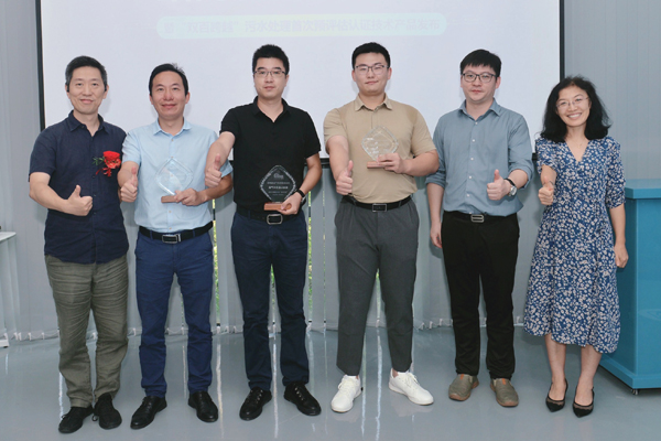 設(shè)備事業(yè)群總經(jīng)理程曉虎(左二)代表華騏環(huán)保領(lǐng)取獎(jiǎng)杯