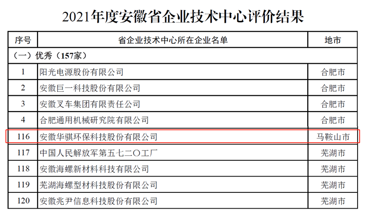 近日,安徽省經(jīng)濟和信息化廳發(fā)布《關于2021年度省企業(yè)技術中心評價結果的通知》,安徽華騏環(huán)??萍脊煞萦邢薰炯夹g中心獲評“安徽省優(yōu)秀企業(yè)技術中心”?!皟?yōu)秀”是省企業(yè)中心評價的最高榮譽,本次全省共計1538家企業(yè)技術中心,經(jīng)省經(jīng)濟和信息化主管部門審查、第三方評價與最終審定,其中157家省級企業(yè)技術中心評價為優(yōu)秀,753家為良好,537為合格,91家為不合格且撤銷省企業(yè)技術中心資格。獲評優(yōu)秀企業(yè)技術中心在產品創(chuàng)新、工藝創(chuàng)新、商業(yè)模式創(chuàng)新、產學研合作及創(chuàng)新成果等方面做出鮮明特色,并獲得優(yōu)異成果,對全省技術中心建設具有引領示范作用。
