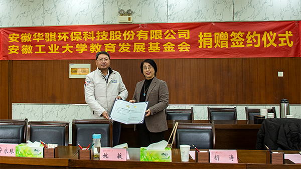 2022年1月14日,安徽華騏環(huán)??萍脊煞萦邢薰九c安徽工業(yè)大學(xué)戰(zhàn)略合作簽約儀式在安徽工業(yè)大學(xué)會議中心舉行。華騏環(huán)保董事長王健,副總胡一強(qiáng)、費(fèi)煜青,安工大副校長顧明言,校友處處長、教育發(fā)展基金會秘書長甘亞,體育部黨總支書記、主任胡濤,工會主席姚敏,學(xué)生工作部(處)處長何偉,團(tuán)委書記王菁,校友工作處副處長、教育發(fā)展基金會副秘書長寧永球,體育部副主任程小坡出席了簽約儀式。體育部副主任李艷主持本次簽約儀式。此次簽約旨在為支持安徽工業(yè)大學(xué)教育事業(yè)的發(fā)展,支持安徽工業(yè)大學(xué)校園科技文化體育活動。