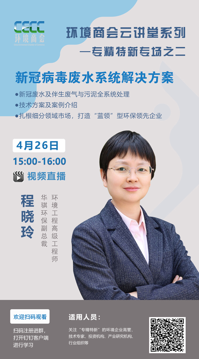預(yù)告:4月26日《新型冠狀病毒廢水系統(tǒng)解決方案》環(huán)境商會(huì)云講堂開(kāi)講