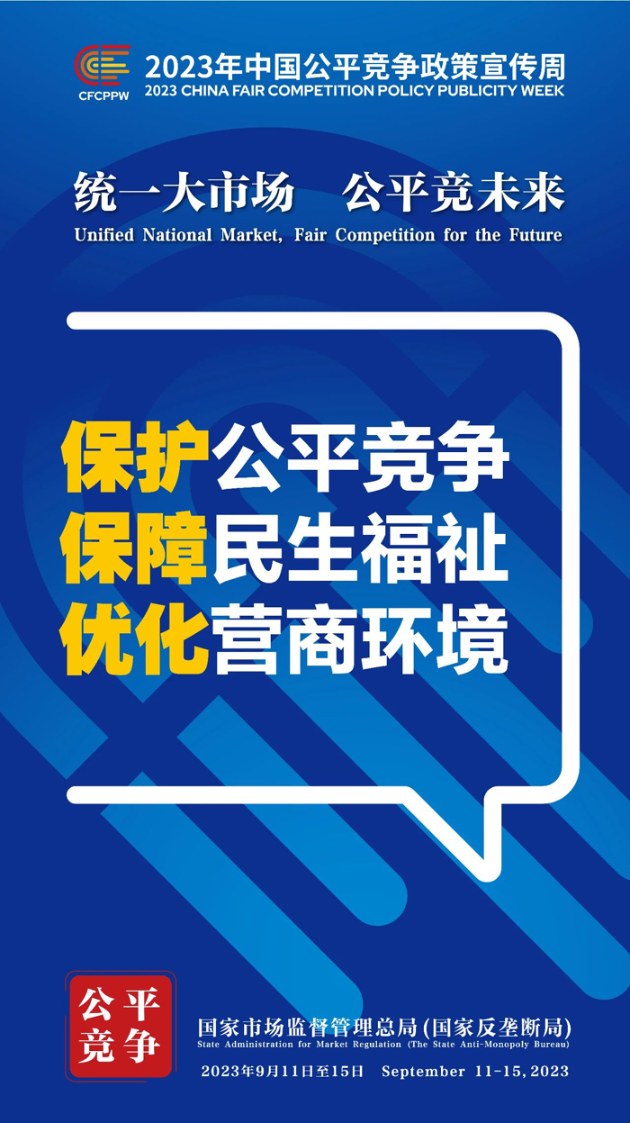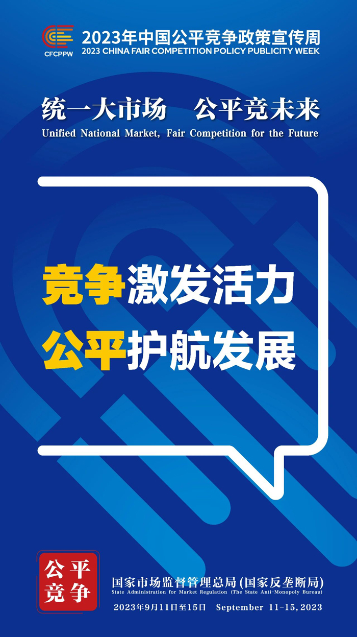 公平競(jìng)爭是市場(chǎng)經(jīng)濟(jì)的基本原則,是市場(chǎng)機(jī)制高效運(yùn)行的重要基礎(chǔ)。近年來,在黨中央、國務(wù)院堅(jiān)強(qiáng)領(lǐng)導(dǎo)下,我國公平競(jìng)爭治理取得重要成就,公平競(jìng)爭制度不斷完善,公平競(jìng)爭秩序穩(wěn)步向好,公平競(jìng)爭理念深入人心,競(jìng)爭領(lǐng)域制度型開放持續(xù)拓展。舉辦2023年中國公平競(jìng)爭政策宣傳周,大力培育和弘揚(yáng)公平競(jìng)爭文化,是貫徹落實(shí)黨中央、國務(wù)院有關(guān)決策部署的重要舉措,對(duì)引導(dǎo)全社會(huì)形成公平競(jìng)爭的良好風(fēng)尚、促進(jìn)經(jīng)濟(jì)實(shí)現(xiàn)質(zhì)的有效提升和量的合理增長具有重要作用。