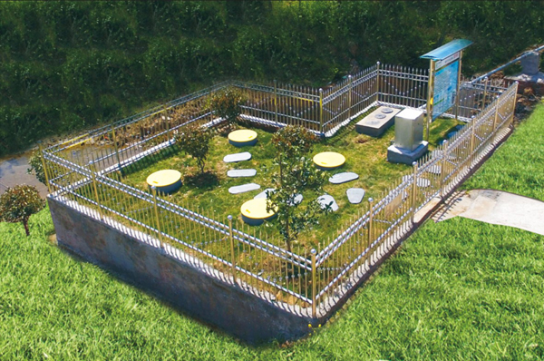 2. 污水處理系統(tǒng):日處理水量20m3/d,采用安徽華騏環(huán)??萍脊煞萦邢薰竟旧a的“魔方格”微動力污水處理裝置。