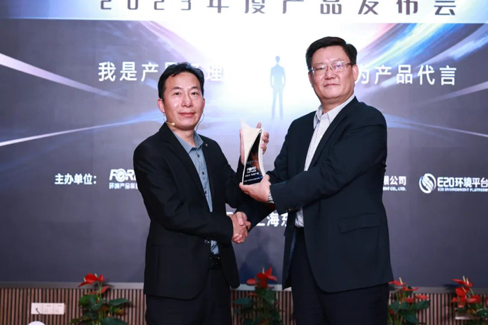 中信環(huán)境技術(shù)投資(中國(guó))有限公司副總裁羅偉為“魔方智水”頒發(fā)環(huán)境產(chǎn)品領(lǐng)跑者國(guó)際聯(lián)盟2023年度產(chǎn)品獎(jiǎng)杯。羅偉表示,技術(shù)產(chǎn)品化,并不一定就是要多掙錢,而是可以為社會(huì)提供更多更有效率的產(chǎn)品,更有價(jià)值的服務(wù)。作為環(huán)保裝備領(lǐng)軍企業(yè),華騏環(huán)保將工程思維轉(zhuǎn)變?yōu)楫a(chǎn)品思維,對(duì)技術(shù)創(chuàng)新進(jìn)行了產(chǎn)品化、裝備化升級(jí),并以魔方的形式,發(fā)布了一系列產(chǎn)品,針對(duì)性地提出了多維全場(chǎng)景產(chǎn)品級(jí)的解決方案,體現(xiàn)出了自己對(duì)行業(yè)產(chǎn)業(yè)升級(jí)的一份貢獻(xiàn)。