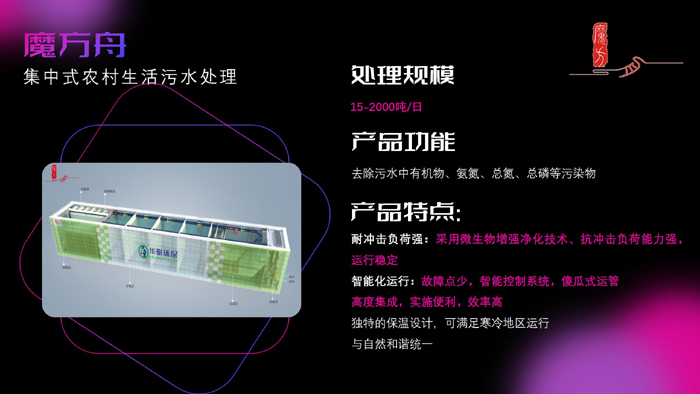 另外,還有針對(duì)小型分散式農(nóng)村生活污水處理場(chǎng)景的魔方格產(chǎn)品,具有能耗低、運(yùn)行簡(jiǎn)單穩(wěn)定兩大特色,日處理水量5噸的魔方格一天僅需一度電。