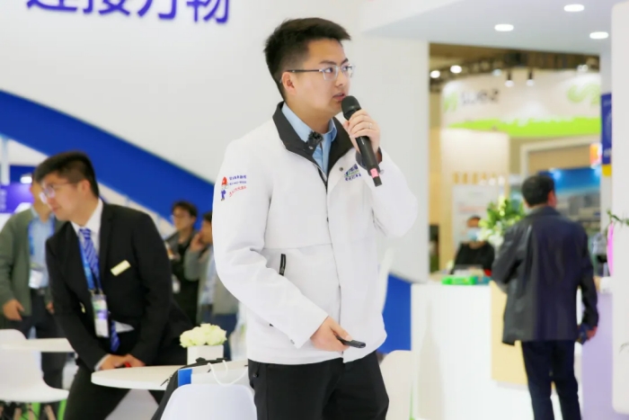 本屆環(huán)博會(huì)上,華騏環(huán)保積極與國內(nèi)外環(huán)保領(lǐng)域的專家學(xué)者和企業(yè)代表充分交流,共同探討環(huán)境污染治理領(lǐng)域的前沿技術(shù)與最新解決方案。華騏環(huán)保副總裁連宏偉在接受E20環(huán)境平臺(tái)采訪時(shí)指出,作為創(chuàng)業(yè)板上市公司、國家級(jí)“專精特新"小巨人企業(yè),華騏環(huán)保不斷提升自主創(chuàng)新水平,通過“一體多翼”的集團(tuán)化戰(zhàn)略布局,堅(jiān)持走技術(shù)產(chǎn)品化的高質(zhì)量發(fā)展之路,加快形成新質(zhì)生產(chǎn)力,以新技術(shù)、新產(chǎn)品創(chuàng)造新價(jià)值,以“高質(zhì)服務(wù)”擘畫未來,以“智慧賦能”擎鑄未來。本次環(huán)博會(huì),華騏環(huán)保的八位產(chǎn)品經(jīng)理現(xiàn)場(chǎng)分享了“BAF智慧工藝的探索與實(shí)踐”、“綠色低碳裝配式污水處理廠”、“魔方智水多維場(chǎng)景污水治理的實(shí)踐與思考”、“iMagcoH磁混凝沉淀池技術(shù)及應(yīng)用”、“iDebed深床反硝化濾池技術(shù)及應(yīng)用”、“臭廢氣收集及處理系統(tǒng)解決方案”、“智能控制器在環(huán)保領(lǐng)域的應(yīng)用與探討”等核心技術(shù)與裝備的精彩內(nèi)容,充分展現(xiàn)了華騏環(huán)保在水務(wù)行業(yè)領(lǐng)域的綜合實(shí)力,亮點(diǎn)紛呈、內(nèi)涵豐富,吸引了眾多與會(huì)嘉賓及業(yè)內(nèi)人士駐足聆聽、互動(dòng)交流。